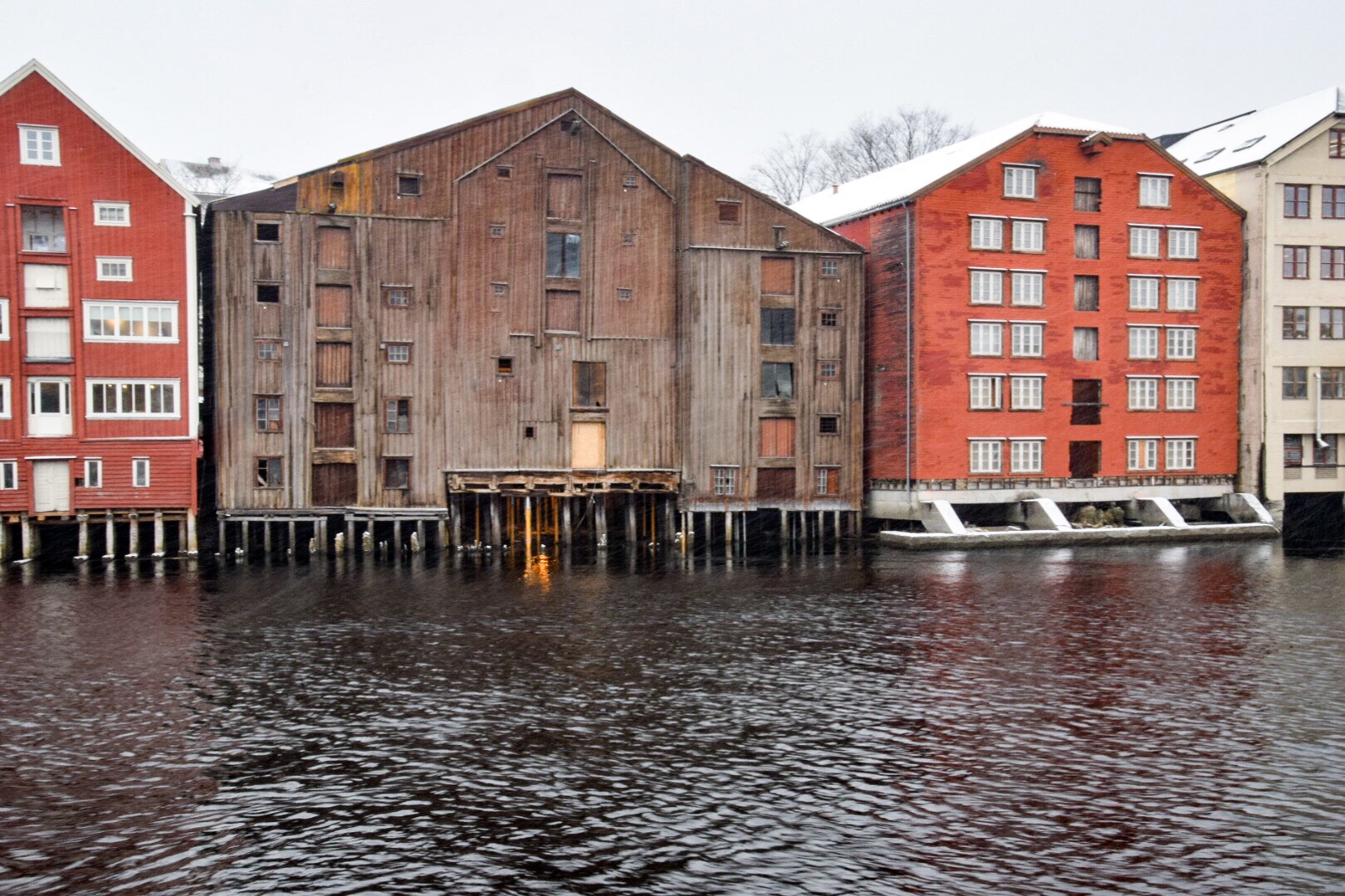 Die Ankunft am frühen Morgen fand bei heftigem Schneetreiben statt. Aber wer sich um diese Zeit auf die Hurtigruten begibt muss auch mit diesem Wetter rechnen und ist entsprechend ausgerüstet. Also gilt es die Stadt zu erkunden. Die Festung Kristiansten, die schön restaurierten Häuser in Bakklandet, den Nidaros Dom und die alte Stadtbrücke.