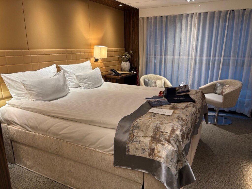 Die Amadeus Queen ist sehr elegant ausgestattet. Die Kabinen sind großzügig mit begehbarem Kleiderschrank, außer die Kabinen auf dem Haydn-Deck.