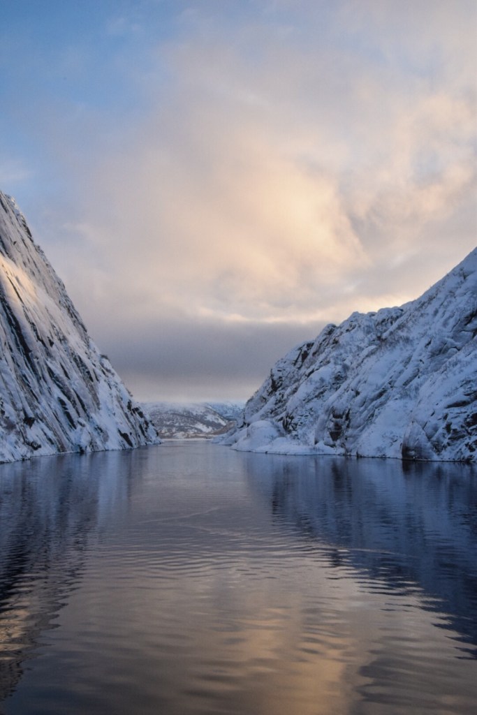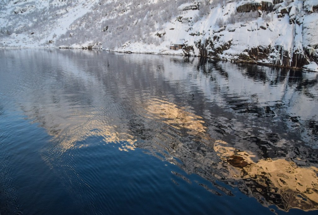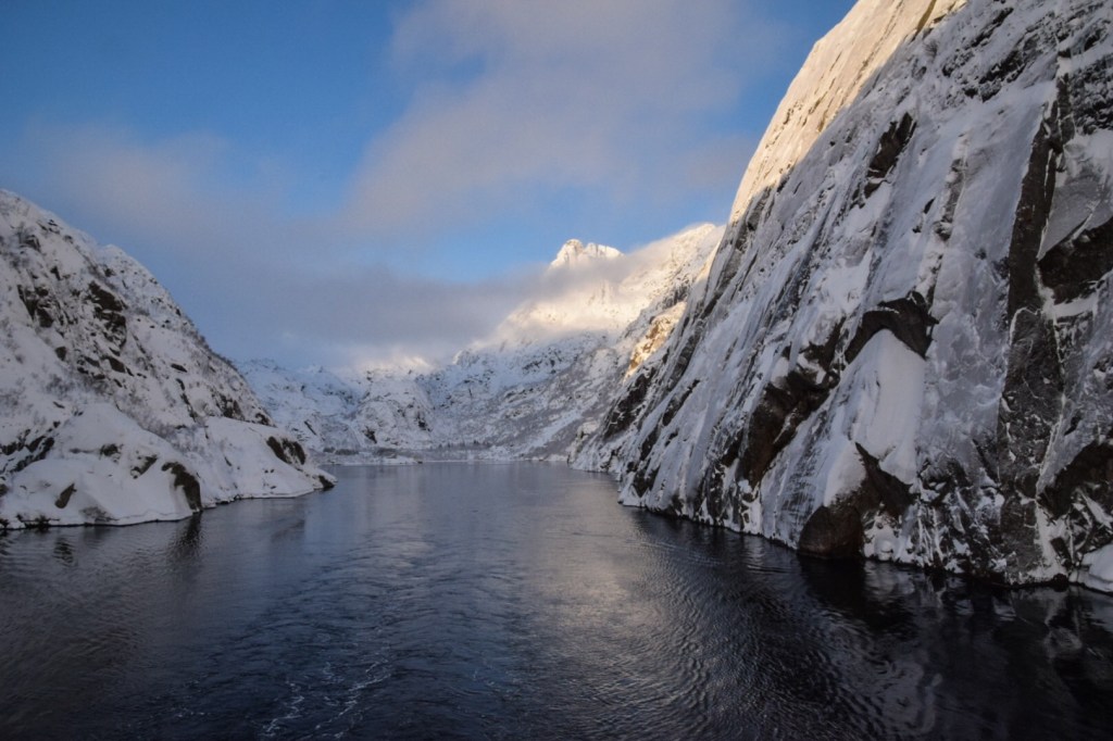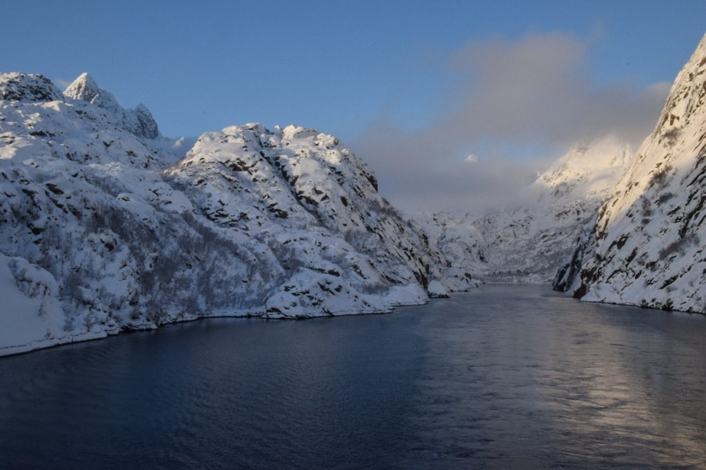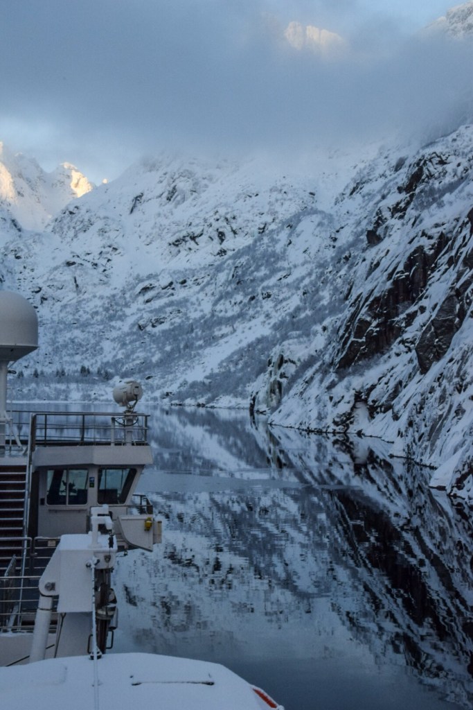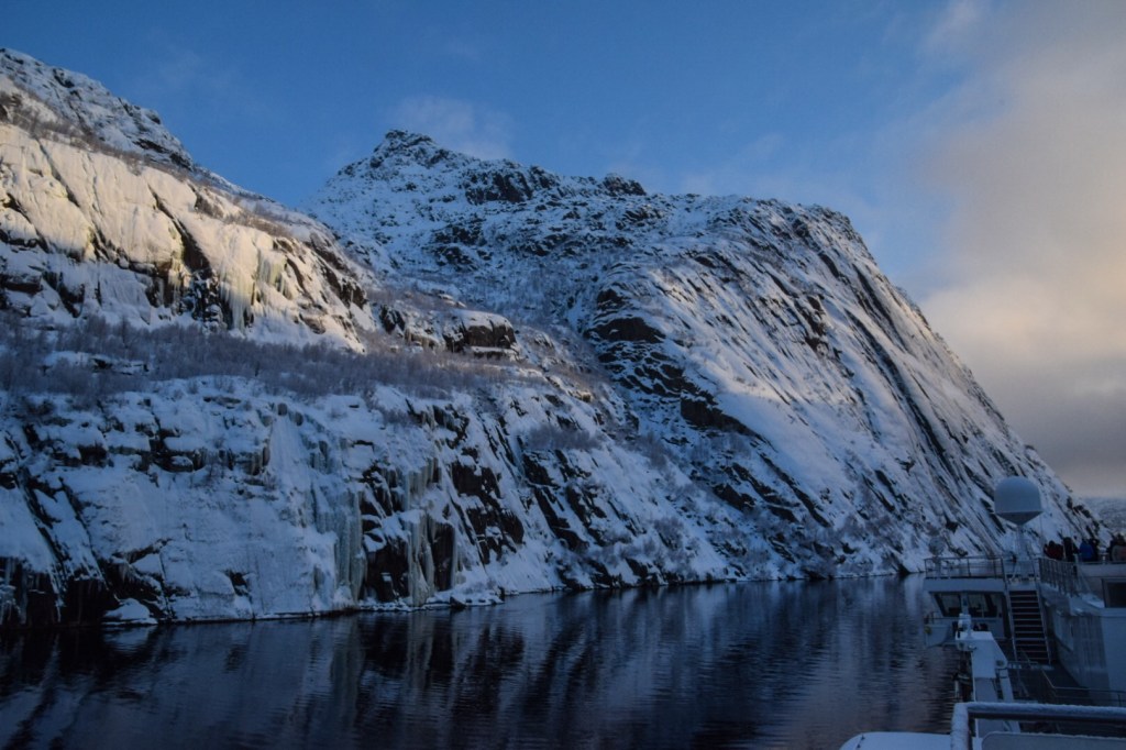 Der Trollfjord bei schönstem Winterwetter: